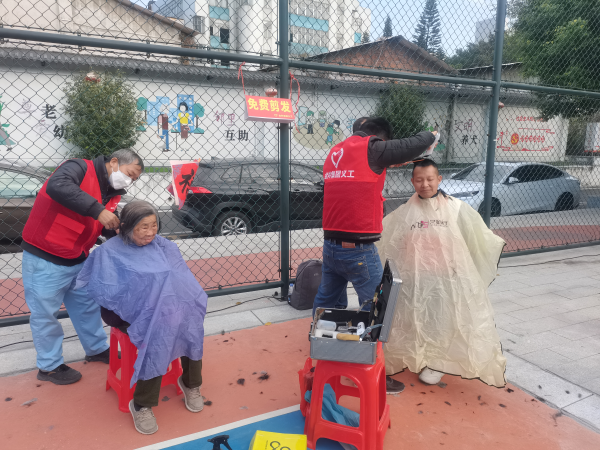 活动当天,党员义工服务队早早来到活动现场做准备工作,一部分义工为现场秩序做疏导工作,一部义工为社区居民进行家电修理和理发服务。义工们一边工作,一边与社区居民唠叨家常,伴随着剪刀咔嚓作响,个个精神焕“发”,看着清爽利落的发型,老人们脸上都露出了开心的笑容。此外,现场还有了舞蹈、歌唱、写春联等丰富多彩的活动,社区居民欢聚一堂,共迎新春,增加邻里间的互动。